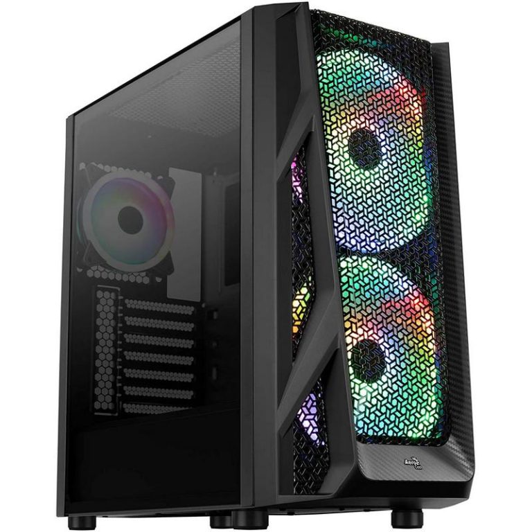 - Iluminación RGB Addressable. Está equipada con 2 ventiladores LED RGB Addressable de 200mm en el frontal, potenciando su estética con hasta 16.8 millones de colores a través de su hub de control. Ofrece hasta 23 efectos de iluminación conectando el hub a cualquier botón de la caja, además de garantizar soporte para hasta 6 ventiladores ARGB Aerocool de 6 pines o 2 accesorios ARGB con conector +5V ARGB.