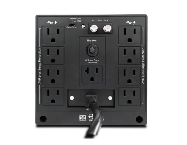 - Voltaje automático regular de 3000VA con potente supresor de sobre tensión incorporado y 8 salidas NEMA 5-15 con 4 reguladas y 4 con sobre tensión solamente.