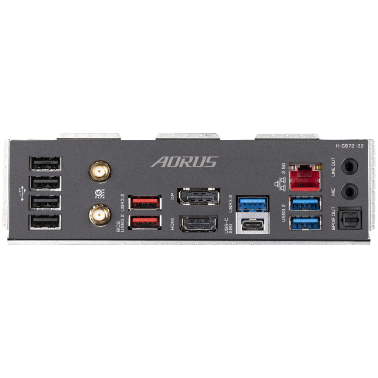 • 2 puertos USB 3.2 Gen 2 tipo A (rojo) en el panel posterior