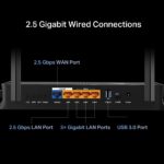 - 2 puertos 2,5 G: 1 puerto WAN de 2,5 Gbps, 1 puerto LAN de 2,5 Gbps y 3 puertos LAN de 1 Gbps ofrecen transmisiones de datos de alta velocidad.